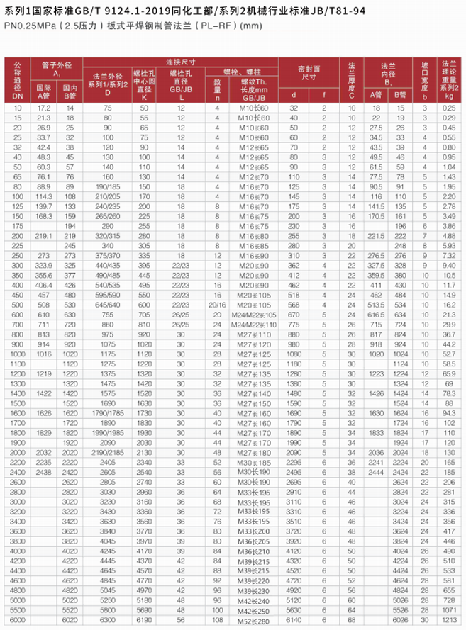 法兰标准表(2.5压力)